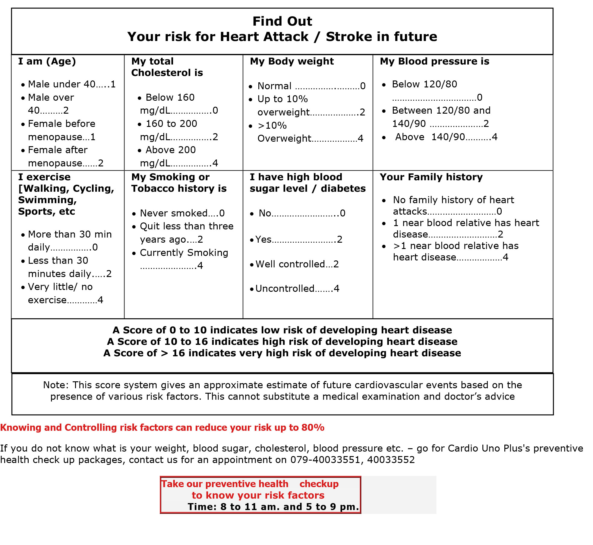 Cardio Uno (Navrangpura Clinic) : 48, Chaitanyanagar, Opp. S.P. Stadium, Nr. Saviour Hospital, Nr. Petrol Pump, Navrangpura, Ahmedabad-14.